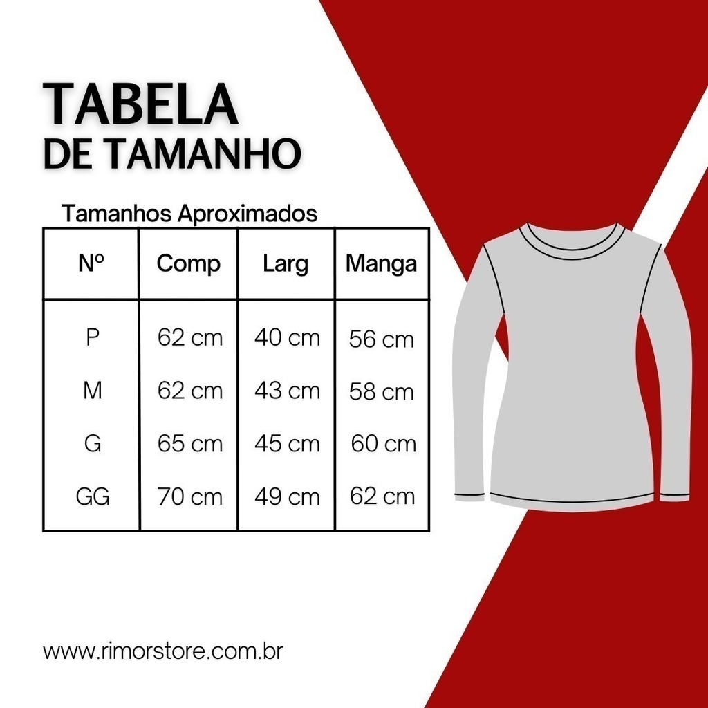 Tabela de medidas: